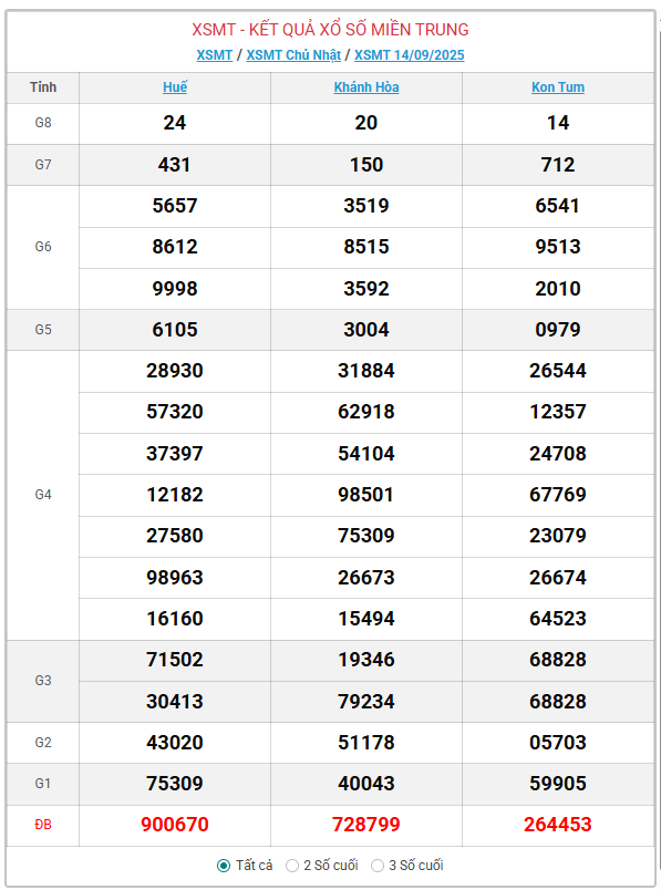 Xổ Số Miền Trung - Kết quả xổ số trực tiếp 14/09/2025