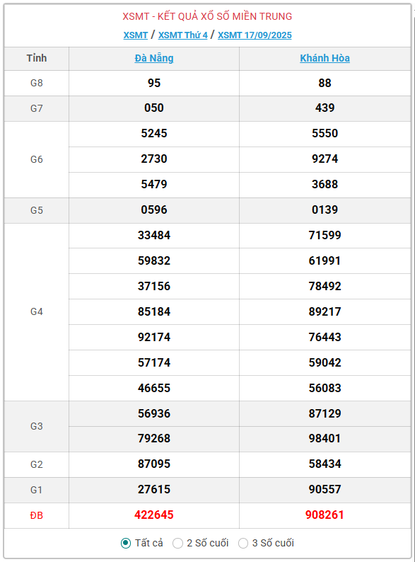 Xổ Số Miền Trung - Kết quả xổ số trực tiếp 17/09/2025