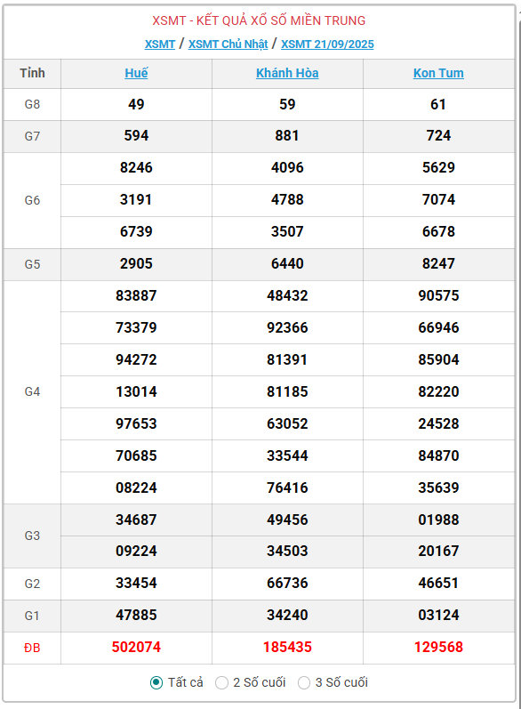 Xổ Số Miền Trung - Kết quả xổ số trực tiếp 21/09/2025