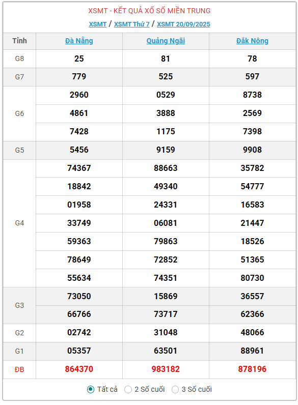 Xổ Số Miền Trung - Kết quả xổ số trực tiếp 20/09/2025