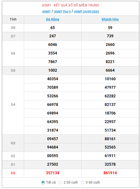 Xổ Số Miền Trung - Kết quả xổ số trực tiếp 24/09/2025
