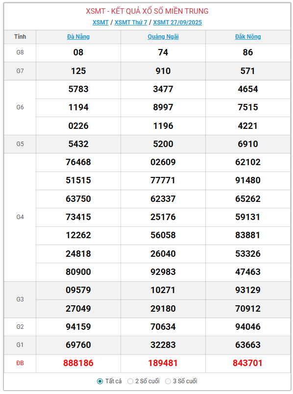 Xổ Số Miền Trung - Kết quả xổ số trực tiếp 27/09/2025