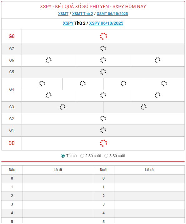 Kết quả xổ số Phú Yên ngày 06/10/2025