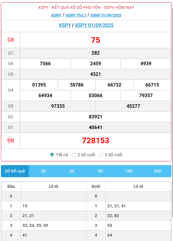 Kết quả xổ số Phú Yên ngày 1/09/2025