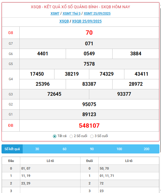 Kết quả xổ số Quảng Bình ngày 25/09/2025