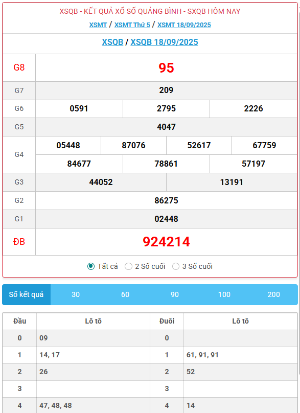 Kết quả xổ số Quảng Bình ngày 18/09/2025