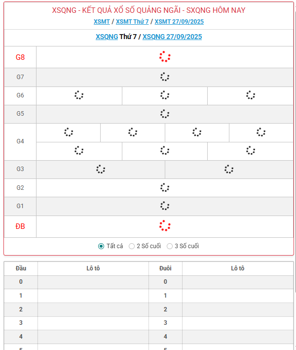 Kết quả xổ số Quãng Ngãi ngày 27/09/2025